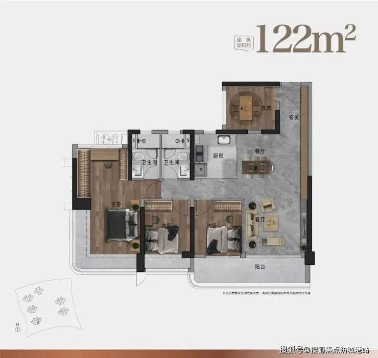 户型亮点:125㎡四房,主卧套房带飘窗,次卧最小面积超9㎡,避免“鸡肋空间”。