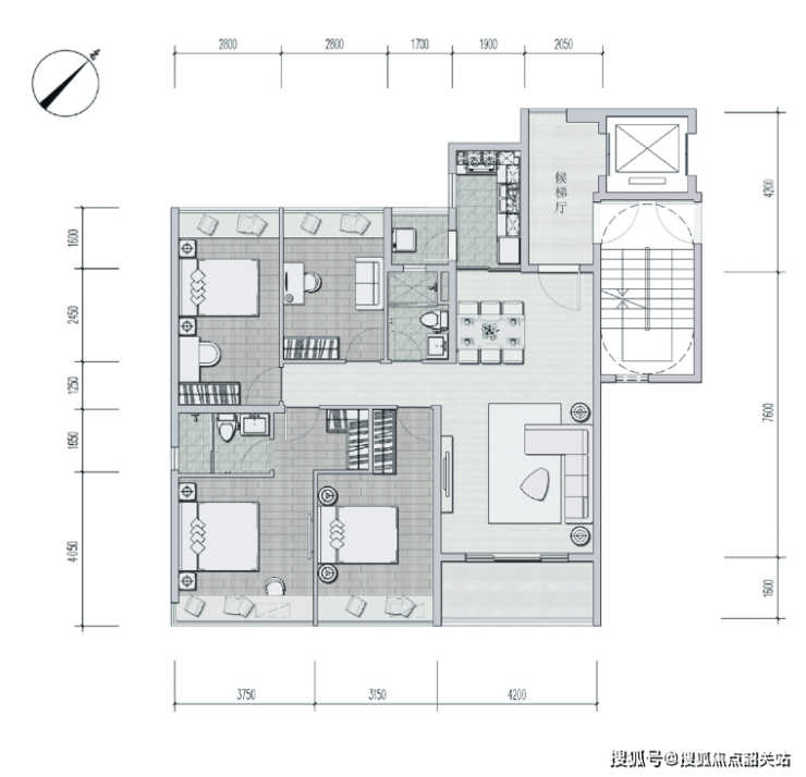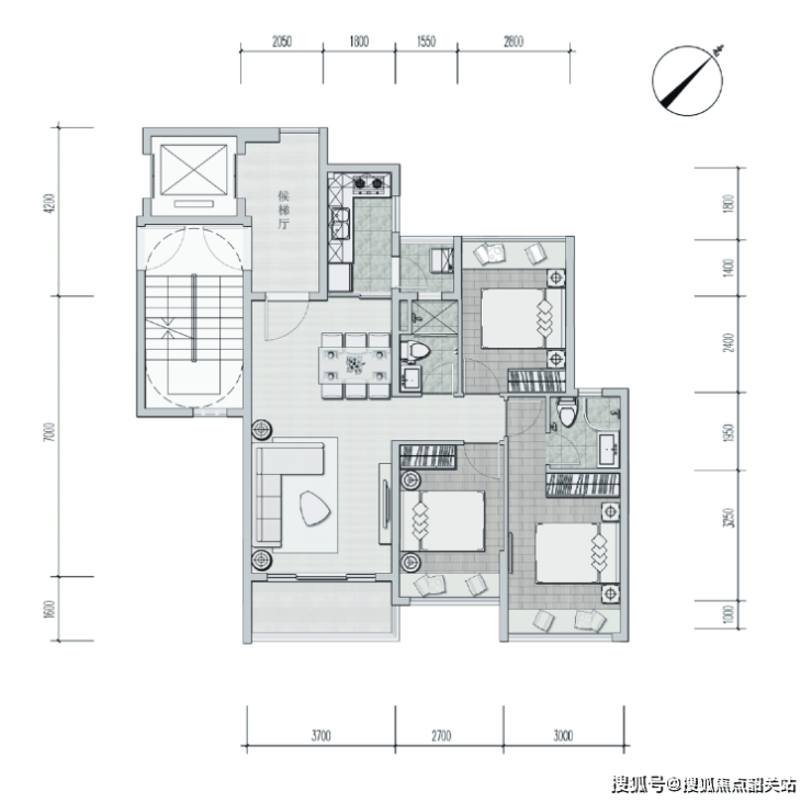 100㎡的三房两厅两卫户型则是性价比极高的选择,私梯入户设计增加了居住的私密性和尊贵感。