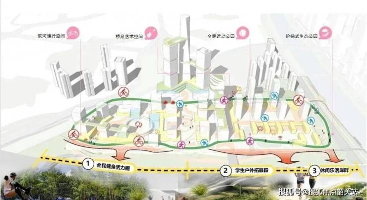 项目设计方案以“构建生态滨水社区、创新集聚枢纽综合体”为理念,旨在打造世界级综合体。主体建筑高度控制在125米以下,临近轨道站点地标建筑则高达265米,形成独特的天际线。同时,项目南北向沿华南快速干线塑造了“万亩果园-赤沙片区-珠江新城”梯级抬升的景观效果,东西向融入了珠江城市景观带天际线背景,营造出丰富的视觉层次感。