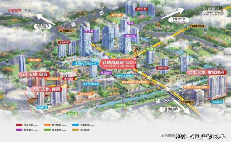交通便利:项目直线距离地铁1号线花地湾站仅500米,未来还将有15条城市/城际轨道交汇,无缝链接大湾区,出行高效便捷。