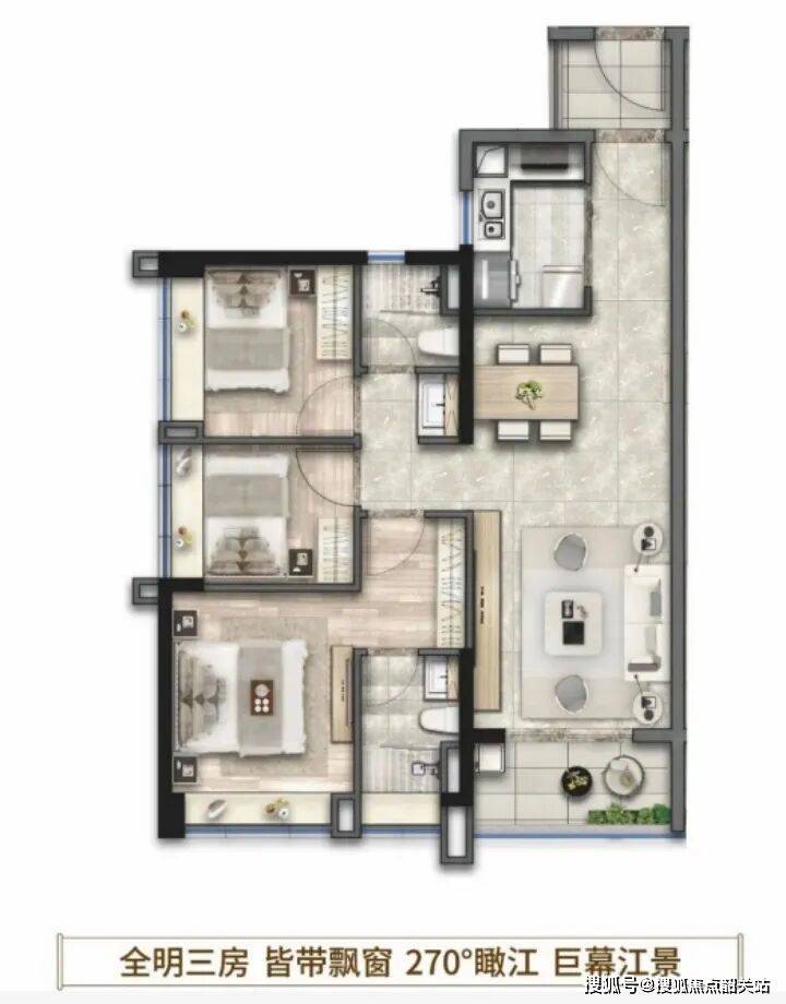 最高可三卧瞰江,市面罕见江景小三房