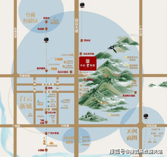 项目地处白云新城CBD核芯,坐享总部集聚与空港经济双重红利。便捷的立体交通网络,让居民能够快速抵达白云机场、天河、越秀等核心商圈。