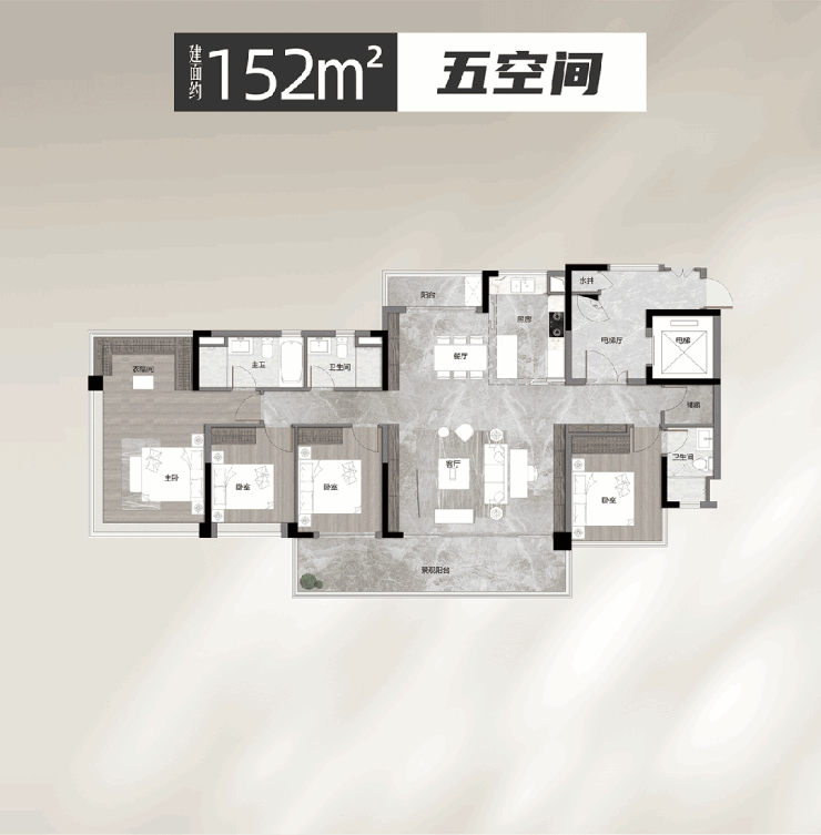 152㎡五空间:低密度板楼小高层产品,豪宅级享受。