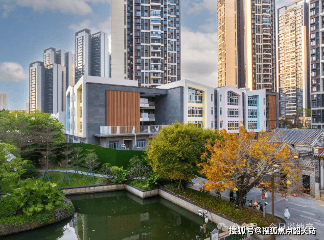 走进社区,肉眼所见一边高颜值的高层洋房,一边又是岭南风情十足的镬耳屋、碧水粼粼的池塘水系,极具冲击力。