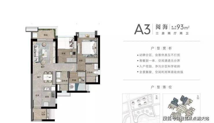 约93㎡南向3房,约93㎡北向3房。