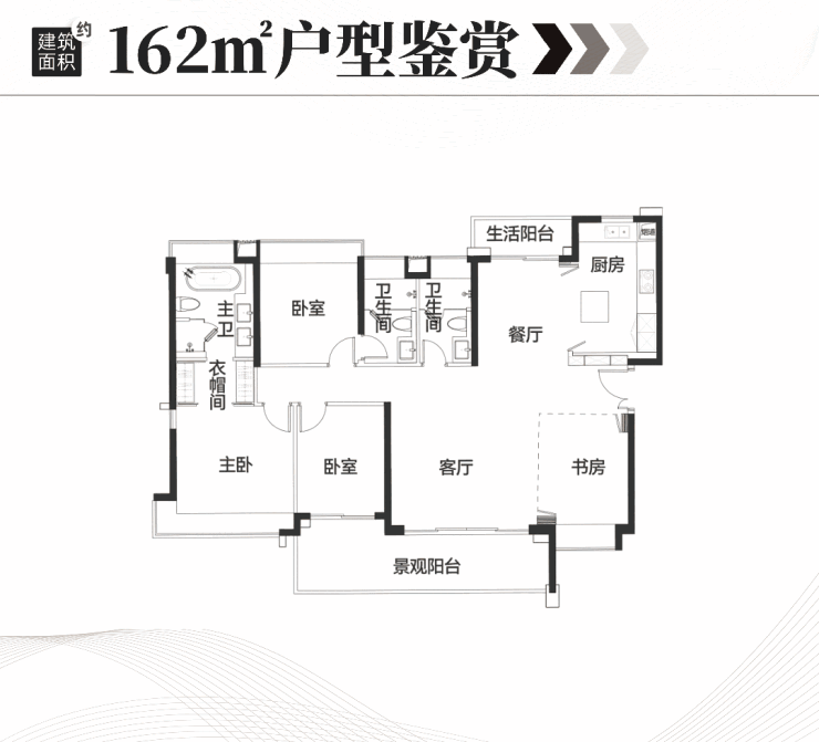 特点亮点:121㎡的PLUS版本,在餐厅北侧多了一个生活阳台,景观阳台连接书房位置。