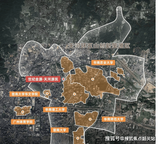 世纪金源·天河源筑坐落于广州天河区核心板块——环五山创新策源区,这里作为城市新中轴线的重要节点,承西启东、接北转南,兼具人文底蕴与城市活力,是广州公认的成熟宜居高地。项目紧邻华南理工大学,周边环绕华南农业大学、暨南大学、华南师范大学等多所双一流高校,学术氛围浓厚,圈层纯粹。