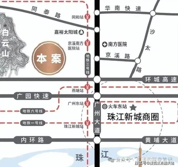 交通脉络:项目坐拥四横四纵干道路网,包括广州大道北、华南快速、机场高速等多条城市动脉。30分钟即可直达白云机场,行程快速覆盖全球。同时,项目紧邻地铁3号线京溪地铁站和梅花园地铁站,其中距离京溪地铁站仅300米,步行5分钟即可到达,真正实现“地铁上盖”的便捷生活。