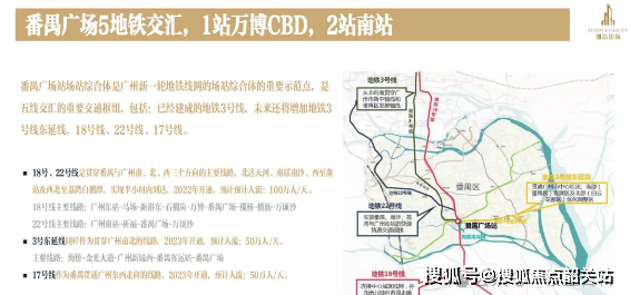 想象一下,你住在这里,出门就是地铁站。番禺广场站是个超级大站,不仅汇聚了地铁3号线这条广州的“大动脉”,还连接了正在建设的18号线和22号线。这两条线是什么级别?那是时速160公里的“快线”,也就是传说中的“地铁高铁”。这意味着什么?意味着你的通勤半径被无限拉大了。往北,2站到广州南站,再转乘高铁能去全国;往东,1站到万博CBD,那是广州南部的另一个繁华中心;再往天河方向,5站直达珠江新城,这在以前可能需要挤一个半小时的3号线,现在可能半个多小时就搞定了。
