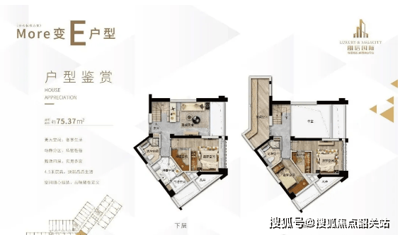 前面提到了层高,现在咱们深入聊聊户型。朗信国际的主力户型是30-75平方米的复式,这是它的核心竞争力所在。