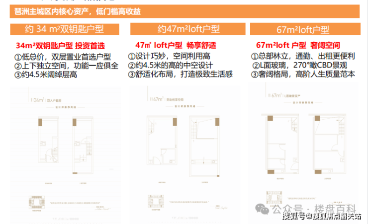 主力在售产品:4.5 米层高复式产品,涵盖小面积双钥匙户型与中空 loft 户型