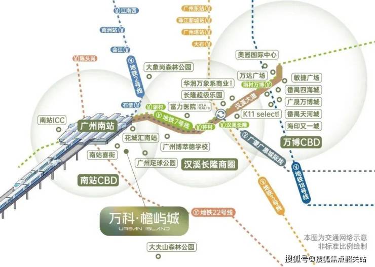 广州南站作为粤港澳大湾区核心交通枢纽,规划定位为“世界级TOD”,集高铁、地铁、城际轨道于一体,日均客流量超50万人次。万科檐屿城落子于此,依托南站商务区、长隆万博CBD双核驱动,周边规划超200万㎡商业综合体、国际医疗中心及优质教育资源,形成“15分钟生活圈”。