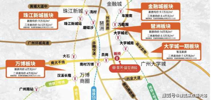 项目紧邻地铁7号线板桥站,三期组团距离该站约700米,2站可达万博核心区,5站直达琶洲,轻松实现与城市核心商圈的快速连接。南大干线作为区域交通主动脉,从项目出发可无缝衔接万博与广州南站,通过多条快速通道,能便捷抵达琶洲、金融城、珠江新城等重要区域,无论是日常通勤还是跨城出行都十分高效。完善的轨交与路网交织成网,构建起覆盖广州乃至珠三角的交通体系,让业主轻松执掌湾区繁华生活。