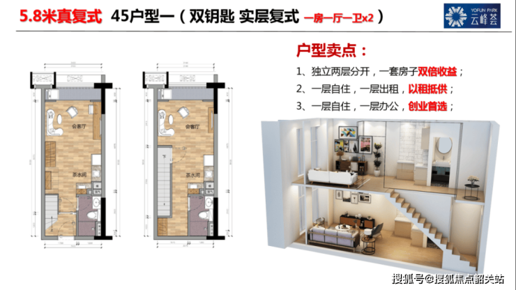 项目周边四大产业圈环绕, 未来高端人才汇聚,租赁需求庞大;市场稀缺产品5.8米层43-65㎡高灵活户型、双钥匙双收益。