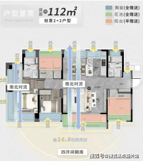 112户型:大四房设计,三阳台赠送,拓延更大生活尺度,瞰江视野升级。