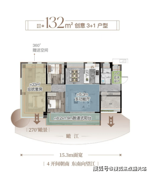 132户型:跑道式阳台设计,IMAX无遮挡视野,奢配总统级套房大主卧。
