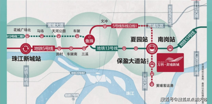 首先,让我们聚焦于项目的轨道交通优势。万科黄埔新城紧邻两条重要的地铁线路:在建的地铁5号线保盈大道站和已开通的13号线南岗站。这两条线路如同城市的两条大动脉,将黄埔区与广州中心城区紧密相连。地铁5号线被誉为广州的“黄金走廊”,它贯穿了广州老城区、珠江新城、琶洲会展中心等核心地段,是连接广州东西向最重要的交通干线。虽然保盈大道站目前处于建设阶段,预计2026年正式开通,但一旦投入运营,将极大提升项目的交通便利性。特别是对于中央公园组团的居民来说,距离地铁站仅约500米,步行仅需5-8分钟即可到达,真正实现了“出门即地铁”的便捷生活。