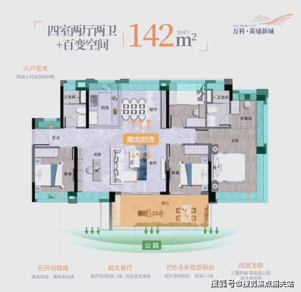 在产品力方面,万科黄埔新城同样表现出色。目前在售户型丰富多样,覆盖了从刚需到改善的全方位需求。主力户型涵盖75至280平方米的三至四房,均价在每平方米2.4万至3.8万元之间。75平方米的南向三房,总价190多万元起,设计紧凑实用,厨卫全明,非常适合预算有限的刚需家庭;88至93平方米的三房两卫,空间利用率超过95%,动静分区合理,客厅连接景观阳台,采光通风极佳,总价在220万至279万元之间,性价比极高;105至142平方米的四房两卫或三卫户型,适配成长型家庭,部分户型带有双主卧套房和7米景观阳台,储物空间充足,隐私性良好;11月新取证加推的217至280平方米大平层,则为追求极致居住体验的改善家庭量身打造,居住舒适度拉满。