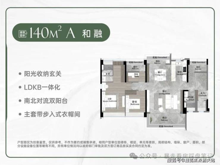 LDKB奢阔厅、宽幕景观阳台、主卧小家化等亮点呈现,兼顾尺度与舒适度需求。
