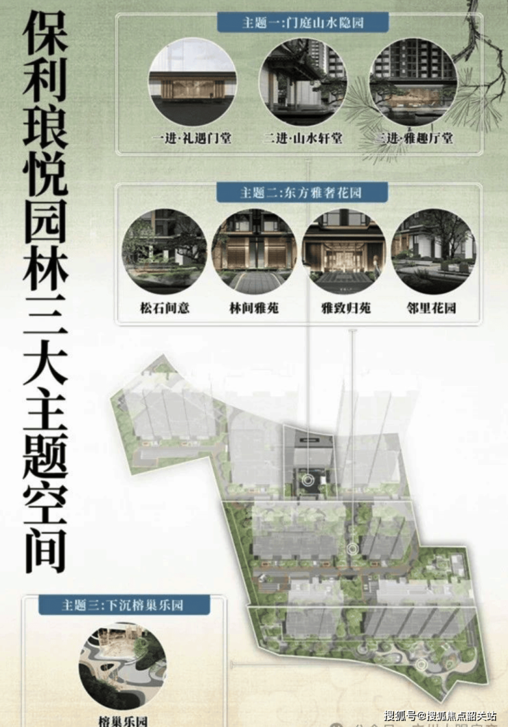 保利琅悦围绕 “宋式礼制,一园三堂” 的主题,打造了花都首个 1.8 万方的宋式园林。整个小区园林规划从北向南,分为门庭山水隐园、东方雅奢花园、下沉榕巢乐园三大主题空间,贯穿东西,层层递进。