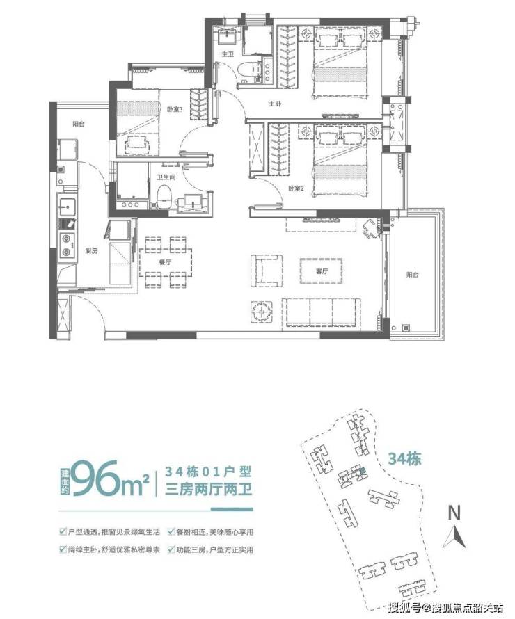 新加推36栋01单位,建面约110㎡大三房一卫双阳台,是项目的核心爆款户型,总价227万起,现楼交付,性价比突出。该户型格局方正,空间宽敞,大尺度卧室设计,保障业主休憩舒适度;配备超12方阔景双阳台,兼具休闲与收纳功能,推窗即可俯瞰社区园林或珠江美景;超16米全明采光面,南北通透对流,让室内常年明亮通透,避免潮湿闷热;动线规划合理,动静分区清晰,公共区域与私密区域互不干扰,适配三口之家或小型改善家庭居住。