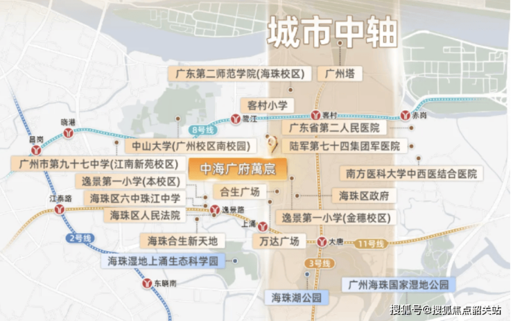 区位稀缺:项目位于海珠新中轴南段核心,连接琶洲、珠江新城及南站枢纽,地理价值高。