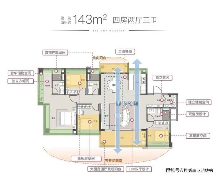143㎡四房,格局和123㎡很像,不同之处在于还有一间卧室朝南,不一一细说。