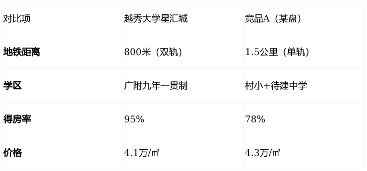 结论:要地铁近+学区稳+空间大,选星汇城;要低价+接受配套不完善,选竞品。