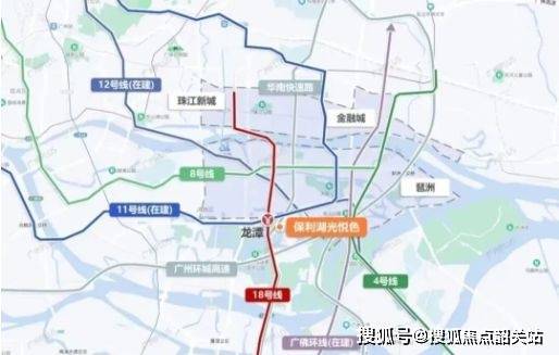 项目位于海珠区华洲路附近,毗邻琶洲CBD拓展区与珠江中轴南段。公共交通层面,可步行至地铁龙潭站(18号线与规划中11号线交汇),实现城市核心区域之间的高效通达能力。18号线已投入使用,可经由琶洲金融城方向通往珠江新城及天河核心区域,为商务出行提供高强度通勤效率;未来11号线投入运营后,将形成环线式交通补充,进一步提升换乘网络密度。