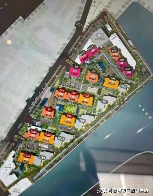 该项目定位于改善型全生命周期住宅,以中大户型为主导,包括约120-140-200㎡四房产品,具备通透性与景观面优势。在楼栋布局上采取“南低北高”式设计,使临河界面以叠墅产品作为低矮界面,增强滨水视野的舒展感,同时保证内部组团的均衡采光与通风条件。