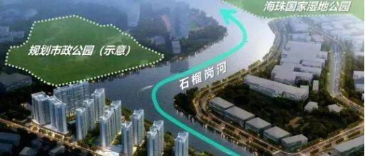 **第二,自然生态资源优势。**项目前侧为石榴岗河,侧向拥有湿地生态界面,并与海珠湖、瀛洲生态园和生物岛形成功能互补的生态体系,为中心城区家庭提供稀缺的自然环境空间。