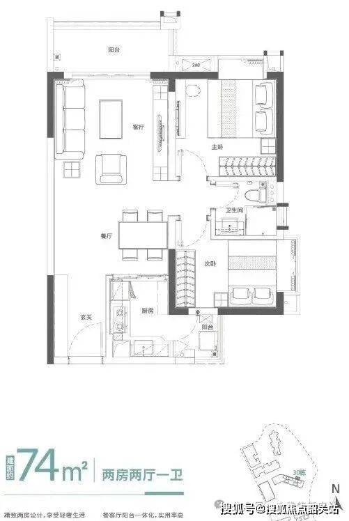 96㎡户型:做到了实用的三房两卫,总价200万级,是刚需上车的首选。