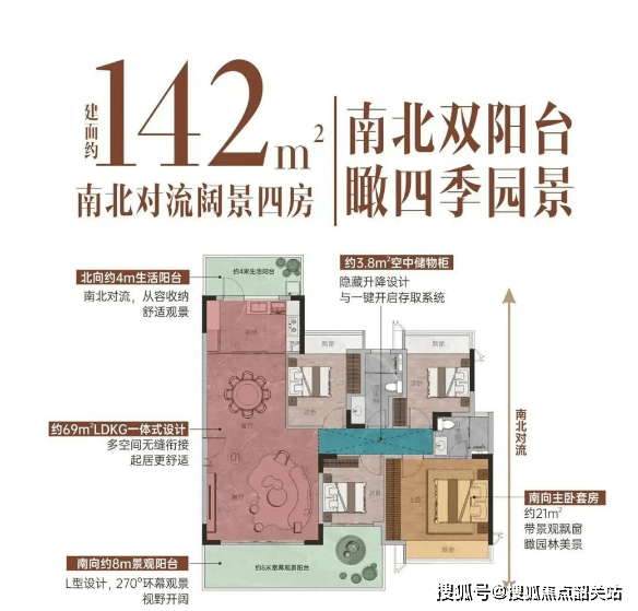 6. 户型设计有何亮点?142㎡四房,LDKG一体化+双阳台