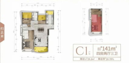 项目主力户型为99-141㎡的三至四房,全部采用南北通透设计,确保良好采光与通风。99㎡三房采用竖厅布局,配备双阳台,厨房与餐厅动线流畅,次卧进深达3.2米,可灵活改造为书房或儿童房,非常适合年轻首置家庭。141㎡四房则采用横厅设计,客厅开间达4.5米,南北双阳台进一步增强空间通透感;主卧套房配置独立卫浴与步入式衣帽间,满足多孩家庭或改善型客群对私密性与功能性的双重需求。