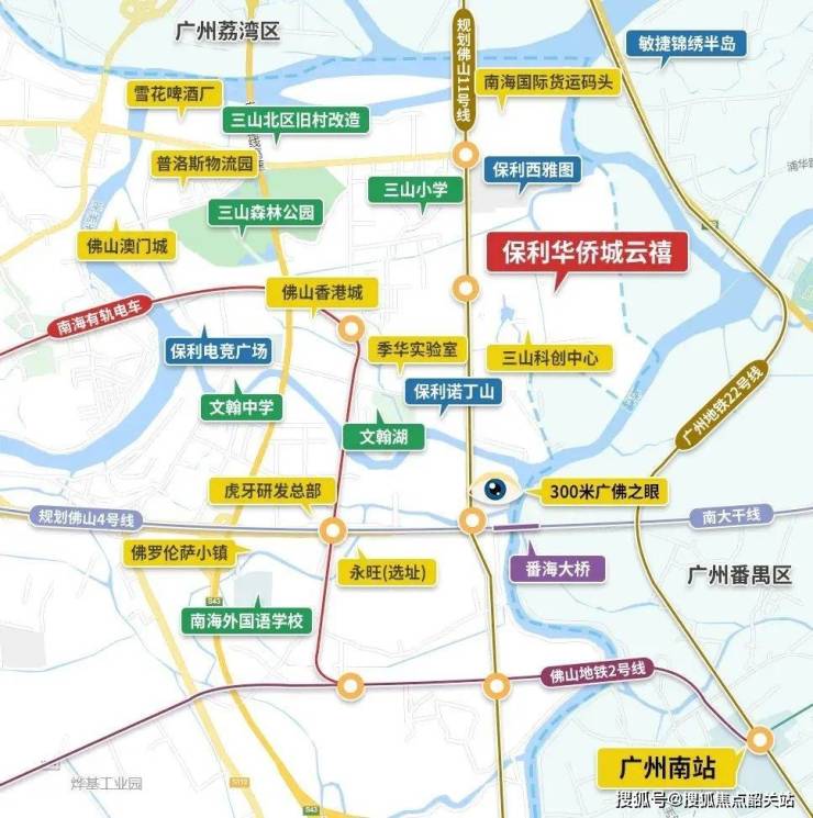 保利华侨城云禧交通网络完善,依托三山新城科创板块核心地位,实现高效通勤与便捷生活的平衡。项目周边规划有佛山地铁11号线创智园站(报批中)、佛山2号线南庄站、佛山4号线三水工业大道站及未来佛山7号线,同时南海有轨电车一号线接入广州南站。区域内还有广州环城高速、广珠西线高速及东新高速,以及海怡大桥、番海大桥、三山西大桥等桥梁,20分钟内可直达广佛核心区,形成高密度立体交通网络,有效串联千灯湖、广钢新城和广州南站,出行便捷高效。