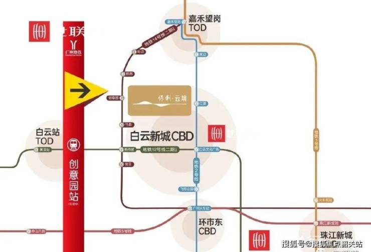 ④便捷交通:3地铁环绕,约600米创意园地铁口,3站接驳白云TOD,5 站越秀,9 站珠江新城