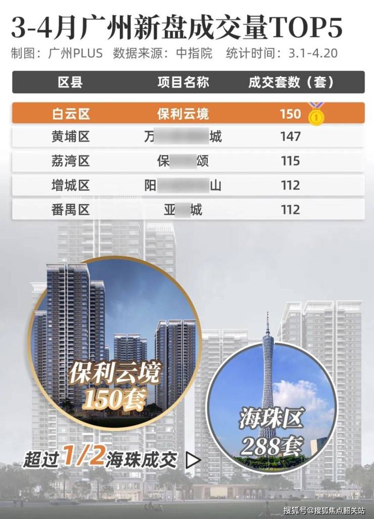 根据中指院数据显示,今年3-4月(截至4.20), 保利云境就以150套的成交量,登顶广州楼市成交榜TOP1。