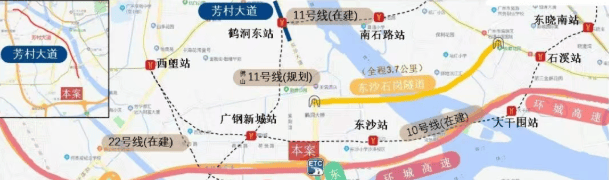 11号线鹤洞东站(在建):作为广州首条环线地铁,贯穿荔湾、海珠、天河、越秀四大中心城区,直达琶洲、广州东站等关键节点。