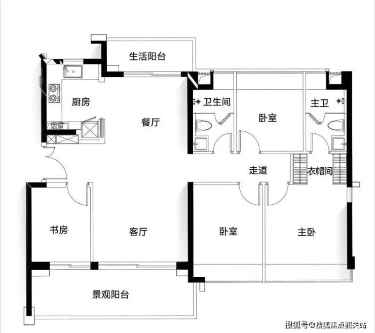 建面约124平方米为升级版本,在原有基础上增加生活阳台,增强收纳与功能分区。