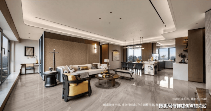 户型方面,主推建面约175-470㎡的大平层,涵盖四房至五房设计。其中175㎡户型采用3.15米层高与16米南向面宽,338㎡户型则配备3.5米层高与“空中院馆”式客厅,空间尺度媲美别墅产品。新中式园林融入亭台楼阁与非遗文化元素,营造出“三进门仪·一园三水七景”的东方美学意境。