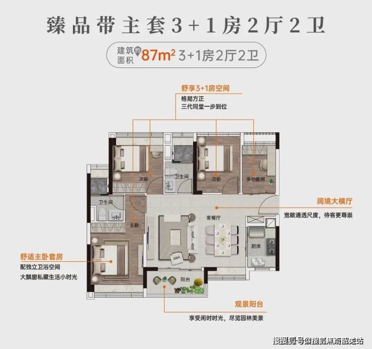 建面约87㎡高实用四房