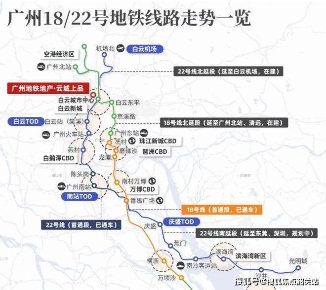 广州地铁云城上品,一听就知道有着地铁开发的独特优势。它位于在建的地铁白云城市中心站上盖,坐拥 18 号线和 22 号线两条高速地铁,最高时速达 160 公里,通过 18 号线能直达广州东站与白云机场,22 号线直抵广州南站,交通便利程度简直无敌,半小时畅达市中心,一小时内玩转大湾区,对于经常出行的人来说,这吸引力没法挡。