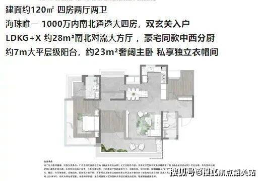 120㎡四房:南北通透,中西分厨,大方厅南北对流,总价 1000 万以内即可拿下,适合改善家庭。