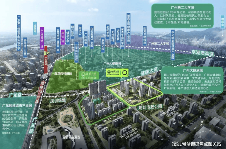 广州国际健康城作为白云区重点打造的产业板块,聚焦大健康产业,规划建设集医疗、科研、养生、康复于一体的综合性健康产业集群,未来将吸引大量高端医疗人才、科研人员入驻,带动板块人口结构优化和消费升级。而广州第二大学城则聚集了多所高等院校和职业院校,不仅为板块带来了浓厚的人文气息,更培育了大量年轻人才,为区域发展注入了青春活力。