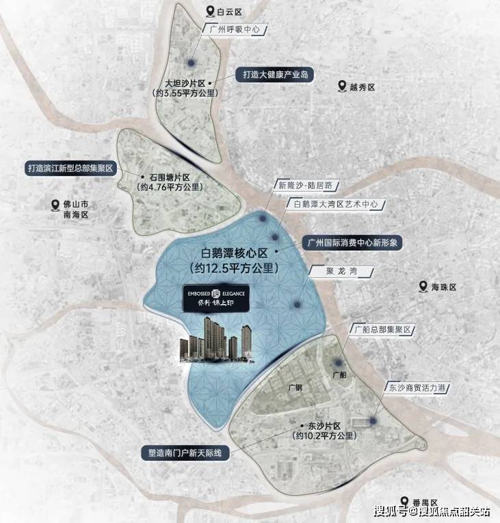 保利锦上印落位广州核心城区荔湾白鹅潭CBD核芯地段,归属于“产-商-居”黄金三极中的花地湾商务组团,先天居住属性优越。