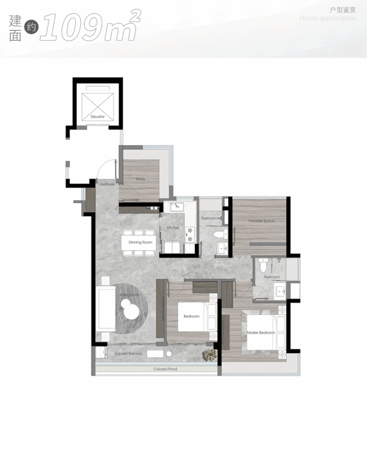 建面约109㎡户型同样独具优势,首推房源南向望一线滨水美景。