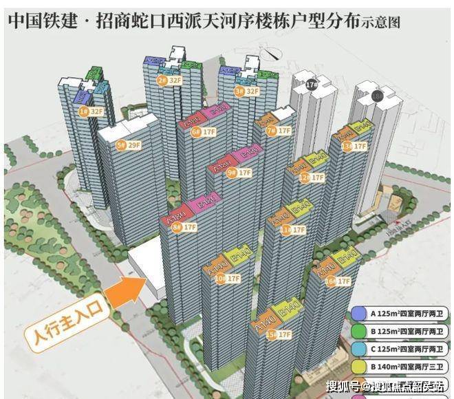 1 - 3 号楼:120 - 143㎡,2 梯 4 户塔楼,层高 3 米,总层高 32 层,提供更多选择,满足不同预算需求。