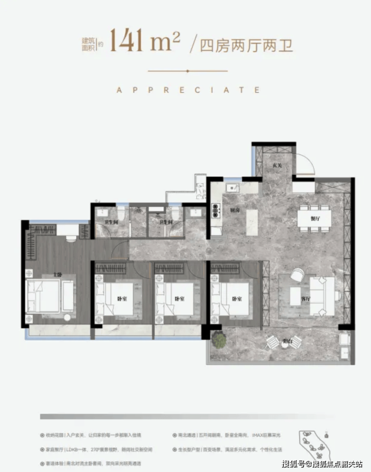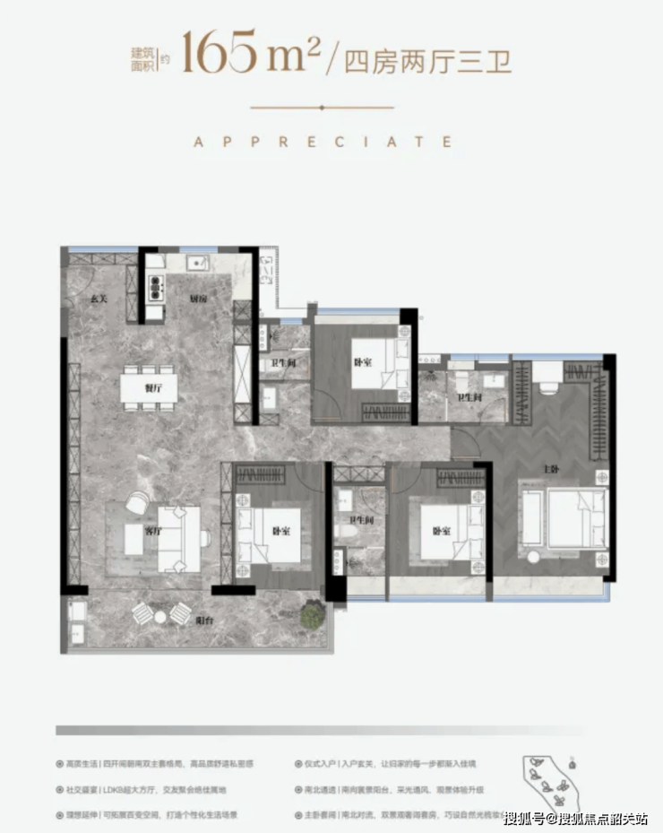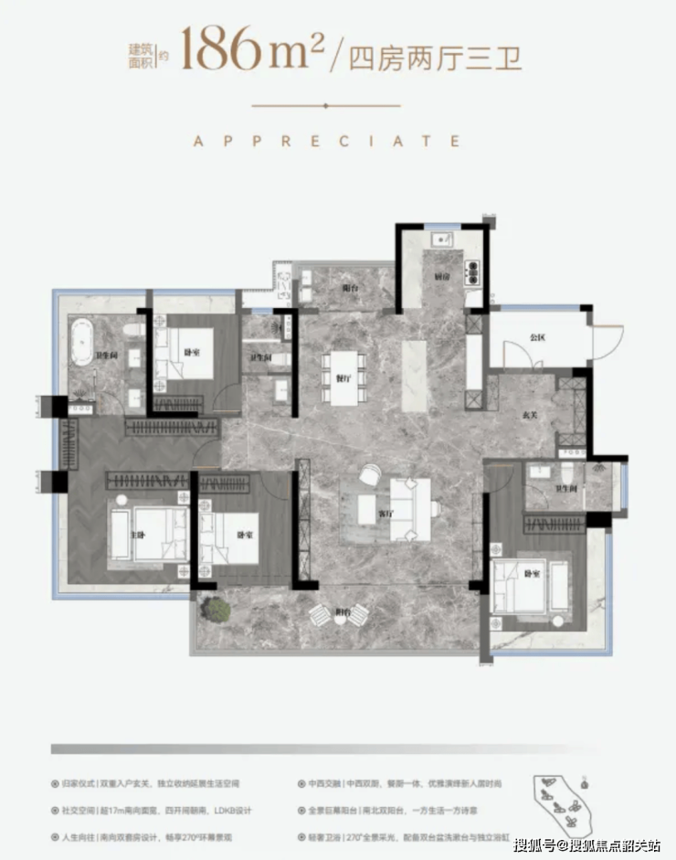 3. 188㎡楼王户型:独立玄关,双套房设计