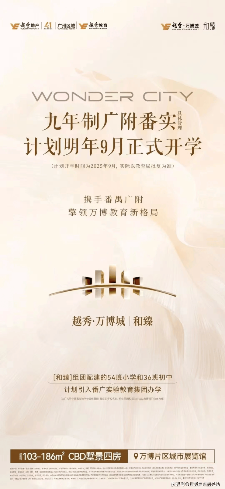 万博城和臻配建12所学校(6所幼儿园、3所小学、2所初中、1所高中),形成完整教育链。其中,CBD组团内的54班小学和36班初中已官宣引入番广实验教育集团办学,由广大附中番禺实验学校具体管理。2024年高考,广附教育集团双一流大学录取率达63%,重本率82%。业主子女可优先入读配建学校(来源:番禺区教育局2025年文件穗教基教〔2025〕1号)。