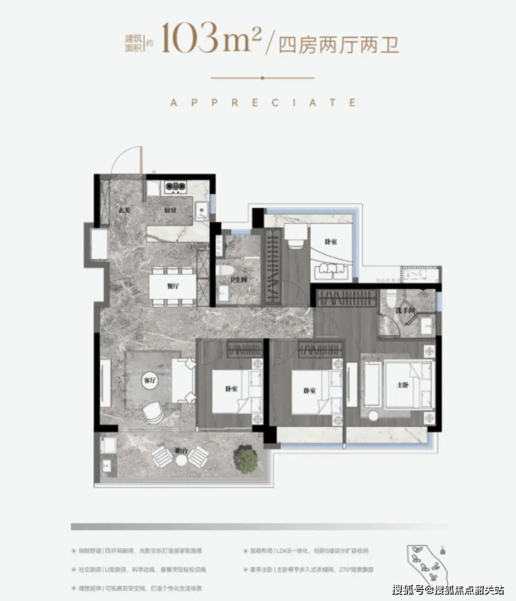 1. 103㎡明星户型:南向四开间,实际使用面积超130㎡